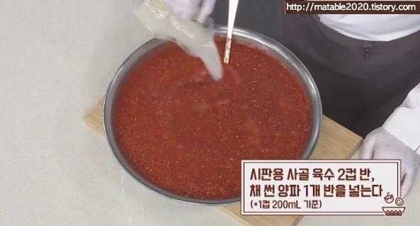 고운 소금 90g(약 ¾컵),사골 육수 2컵 반