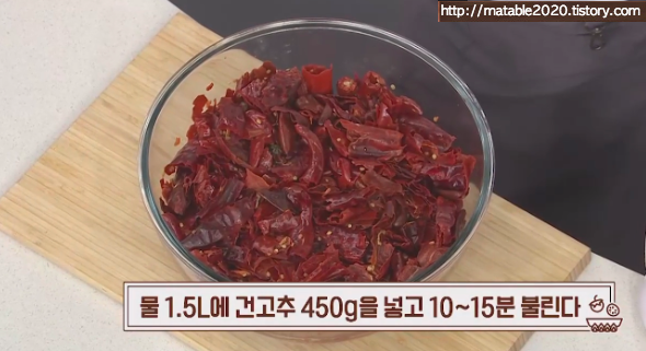 3. 물 1.5L에 건고추 450g을 넣고 10~15분 불린다.