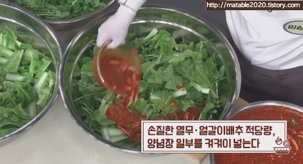mbn 알토란 유정임 봄갓김치 오이소박이 임성근 다진고기 열무김치 레시피 223회 알토란 김하진 파김치 맛있게 담그기 쪽파 1.5kg, 냉이 300g, 멸치액젓 1컵 반, 국물멸치 20마리, 배 100g, 무 100g, 양