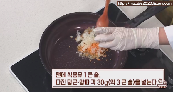 다진 당근 30g(약 3 큰 술), 다진 양파 30g(약 3 큰 술), 청양고추 2개