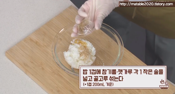 묵은지 8장, 소고기 (다짐육) 50g, 밥 1컵,